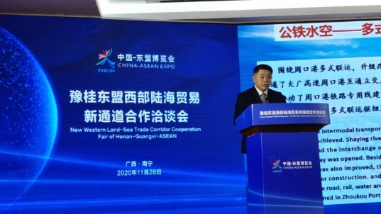 11月27日,第17屆中國——東盟博覽會在廣西南寧拉開帷幕,周口港區(qū)隨河南代表團亮相盛會。在開幕式次日舉辦的豫桂東盟西部陸海貿(mào)易新通道合作洽談會上,周口港區(qū)黨委書記孫紅偉登臺演講,向國內(nèi)外參會嘉賓、客商推介周口中心港多式聯(lián)運便利條件以及港區(qū)招商引資優(yōu)厚政策,令與會人員眼前一亮。一家來自越南的進出口貿(mào)易企業(yè),當場與港區(qū)企業(yè)簽訂進出口貿(mào)易長期合作協(xié)議。