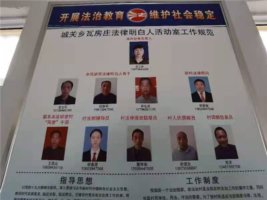 而這樣的法律明白人,瓦房莊行政村就有幾十人。專門為瓦房莊、杜莊、趙莊、董莊、蘇王堂5個自然村的村民服務(wù)!而在全縣,幾乎每村都有十?dāng)?shù)名不等!