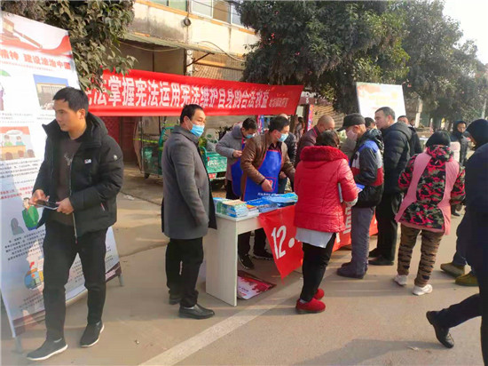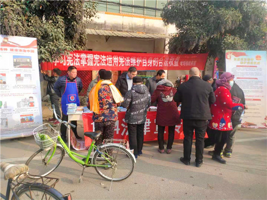 12月4日,西華縣址坊鎮(zhèn)司法所聯(lián)合鎮(zhèn)安監(jiān)辦鎮(zhèn)綜治辦、鎮(zhèn)婦聯(lián)、鎮(zhèn)軍人服務(wù)部、鎮(zhèn)派出所在鎮(zhèn)政府大門西50米路北設(shè)立咨詢臺,開展“12.4”憲法宣傳日普法活動,為過往行人送上豐富的法制教育大餐。