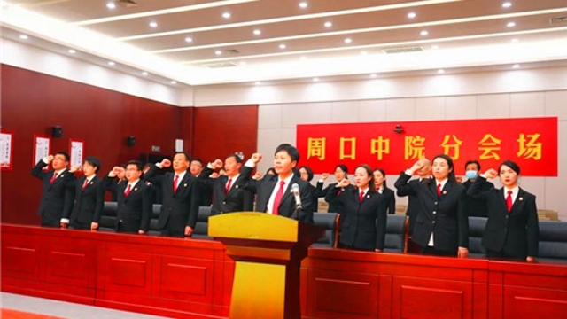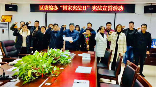 12月4日是第七個(gè)國(guó)家憲法日。為弘揚(yáng)憲法精神、維護(hù)憲法權(quán)威,當(dāng)日,川匯區(qū)人和街道辦事處全體班子成員、機(jī)關(guān)干部、人大聯(lián)絡(luò)站代表、各社區(qū)“兩委”班子成員90余人在辦事處新時(shí)代文明實(shí)踐所舉行了憲法宣誓活動(dòng)。