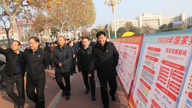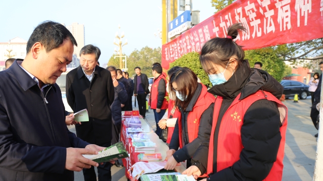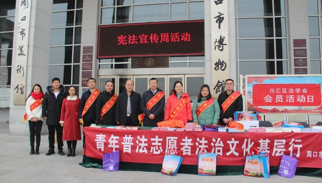 12月3日,在第七個(gè)國(guó)家憲法日來(lái)臨之際,周口市委政法委、周口市法學(xué)會(huì)、川匯區(qū)法學(xué)會(huì),聯(lián)合團(tuán)體會(huì)員單位市博物館、市文物保護(hù)中心開展憲法、國(guó)家安全、反邪教宣傳活動(dòng),讓遵守憲法和法律在全社會(huì)成為習(xí)慣、成為自覺。周口市委政法委副書記張曉、二級(jí)調(diào)研員朱建民參加普法宣傳活動(dòng)。