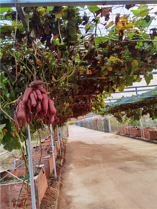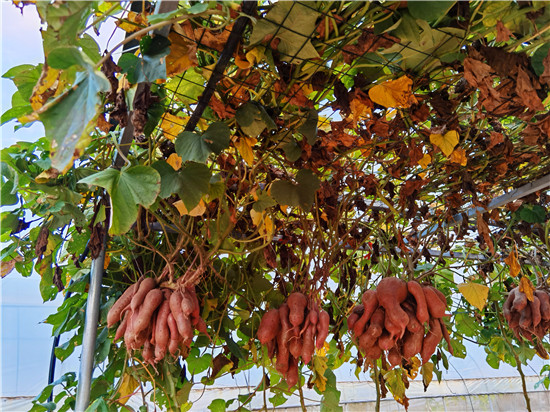 西華縣農(nóng)科所積極開展“空中結(jié)薯”試驗種植研究,并取得成功?!翱罩薪Y(jié)薯”采取嫁接技術(shù),選用旋花科植物牽牛作砧木,脫毒薯苗作接穗嫁接而成,嫁接成活后栽到土壤里,搭建棚子,加強(qiáng)薯苗水肥管理,每株插一根小竹木桿,促進(jìn)薯苗快速生長上棚,在棚上吊花盆,盆內(nèi)放蛭石,生長到掤上的薯秧壓到花盆里,加強(qiáng)水肥管理。90天結(jié)薯,進(jìn)入10月份把花盆去掉。該技術(shù)打破傳統(tǒng)栽培方式,主要為公園、科技園區(qū)、農(nóng)業(yè)生態(tài)觀光園、家庭庭院內(nèi)培植,有很好的科研價值、觀賞價值和農(nóng)業(yè)推廣價值。周口日報·周道客戶端記者李鳳霞 攝