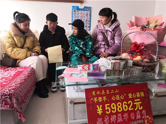 “此次愛心捐款活動,不僅體現(xiàn)了師生們博愛、奉獻、團結、向上的高尚品質,還讓學生懂得城區(qū)二小是個有愛的集體,大家是相親相愛的一家人,風雨同路,共渡難關!”該校有關負責人說。②6