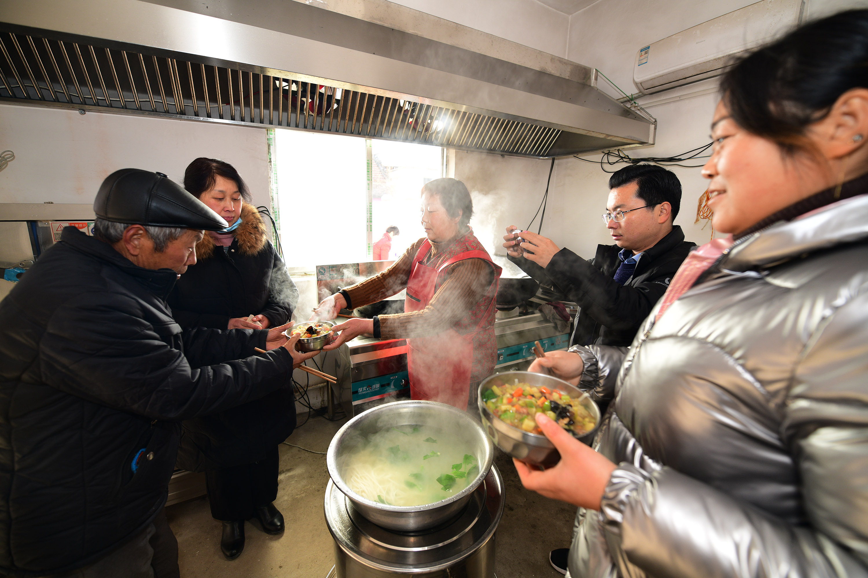 “開飯嘍!”隨著一聲喊,十幾位老人走進(jìn)炊煙裊裊、菜飯飄香的小院,拿著碗和積分卡,排隊(duì)打飯。這是12月15日中午,記者在西華縣奉母鎮(zhèn)七里倉(cāng)二村看到村食堂開飯的場(chǎng)景。老人每人一碗臊子面,吃得渾身熱乎乎的。這一勺飯,讓這里的老人長(zhǎng)壽幸福,從此不再怕風(fēng)雨不再畏嚴(yán)寒。這一勺飯,是七里倉(cāng)二村今年實(shí)施土地治理后的村集體公糧,也是實(shí)施土地承包制40年來(lái)村集體里的首份余糧。