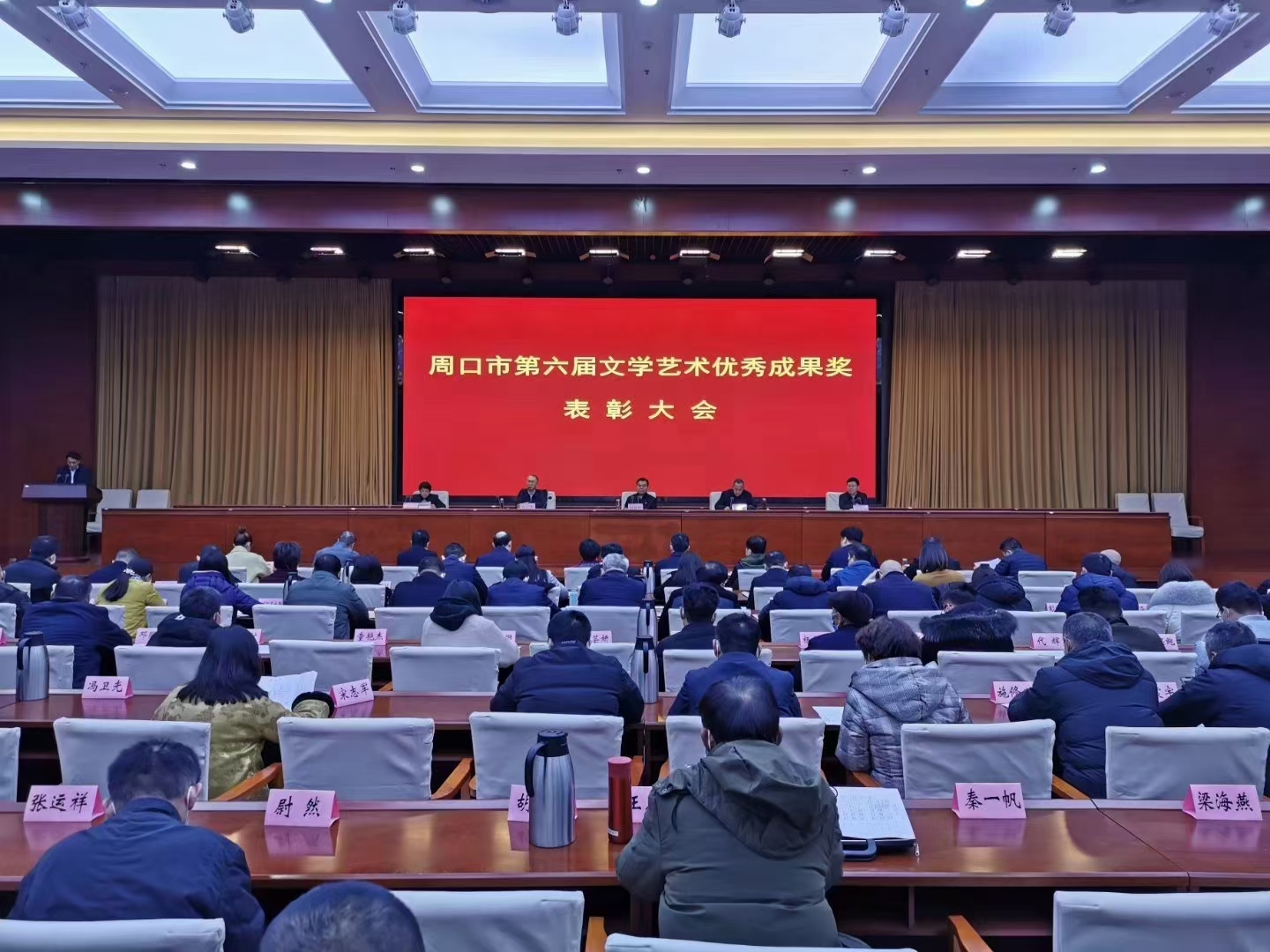 周口市第六屆文學(xué)藝術(shù)優(yōu)秀成果獎(jiǎng)表彰大會(huì)日前隆重召開,太康縣文聯(lián)被市政府授予“文藝工作先進(jìn)單位”和“文學(xué)藝術(shù)成果獎(jiǎng)優(yōu)秀組織獎(jiǎng)”??h文聯(lián)主席安義斌在大會(huì)上作了典型發(fā)言。太康縣書法家劉文勇、許春梅,畫家張本靜、張?jiān)伱贰⑹┙▏?、李俊柯、姚海歌,作家李新峰,表演藝術(shù)家張?zhí)煊?、王在理?0位藝術(shù)家也一同受到表彰。