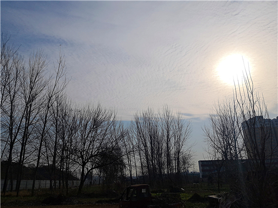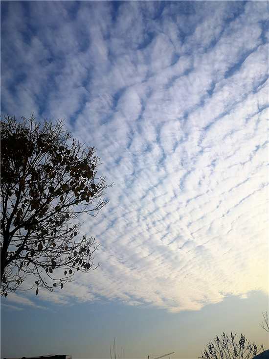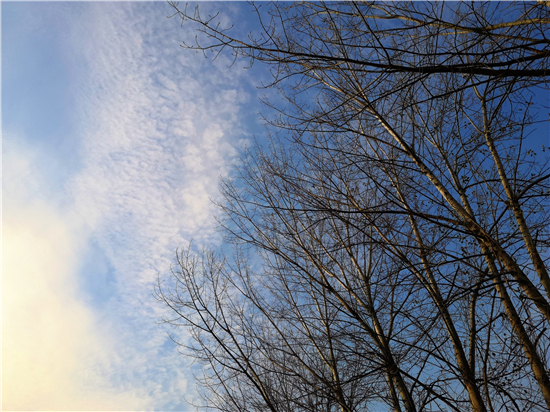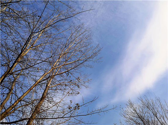 近日,我市天氣晴朗,漫步在街邊小道上,抬頭望去,處處皆是風景,比如蔚藍的天空、挺立的高樓、蒼茫的禿枝……這一切都勾勒成了一幅唯美的冬日畫卷。