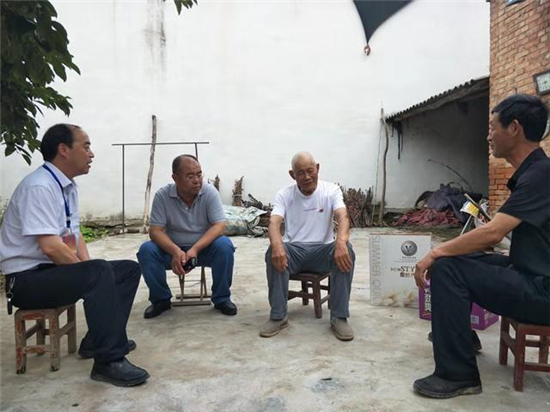 王新奇(右一)到貧困村民家中走訪(fǎng) 王曦健 攝