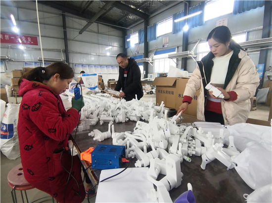能人返鄉(xiāng),帶富一方。張宇和他的伙伴不僅在家門(mén)口圓了創(chuàng)業(yè)夢(mèng),還為當(dāng)?shù)厝罕娞峁┮粋€(gè)就業(yè)平臺(tái),目前有40多名村民常年在公司上班,其中一半是附近的貧困群眾。為了給更多群眾提供就業(yè)機(jī)會(huì),該公司還推出“外派加工”的崗位,把一些技術(shù)含量不高的生產(chǎn)工序,讓附近村民帶回家加工,在照顧家庭的同時(shí),每人一個(gè)月也能拿到2000左右的工資。