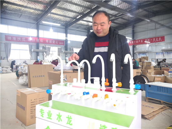 田口鄉(xiāng)張大樓村的張宇是返鄉(xiāng)創(chuàng)業(yè)大軍中的一員。他是一名軍人,曾在利比亞執(zhí)行維和任務(wù)時(shí)不幸腰部負(fù)傷,導(dǎo)致6級(jí)傷殘。復(fù)員后,他開(kāi)過(guò)飯店,做過(guò)五金生意,但都是小打小鬧。2016年,在返鄉(xiāng)創(chuàng)業(yè)政策的引導(dǎo)下,他和幾個(gè)老鄉(xiāng)在家門(mén)口創(chuàng)辦了西華縣眾達(dá)塑膠制品有限公司,主要生產(chǎn)新型環(huán)保水龍頭。