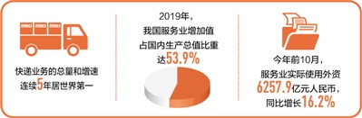 過去兩年,我國宣布了眾多金融業(yè)開放措施,以金融業(yè)為代表的服務(wù)業(yè)開放成為我國全面擴(kuò)大對(duì)外開放的“重頭戲”?!笆濉币詠恚覈?wù)業(yè)對(duì)外開放新舉措密集出臺(tái),服務(wù)業(yè)開放步履鏗鏘。統(tǒng)計(jì)顯示,今年前10月,服務(wù)業(yè)實(shí)際使用外資6257.9億元,同比增長16.2%。