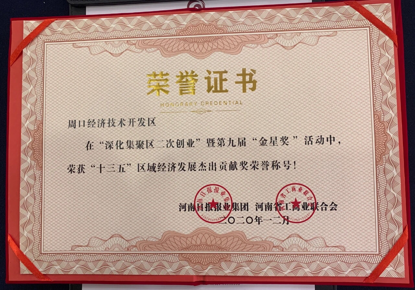 12月17日至18日,以“變革與新生”為主題的第九屆河南省產(chǎn)業(yè)集聚區(qū)座談會暨頒獎典禮大會在鄭州舉辦,開發(fā)區(qū)榮獲“十三五”區(qū)域經(jīng)濟發(fā)展杰出貢獻獎榮譽稱號。