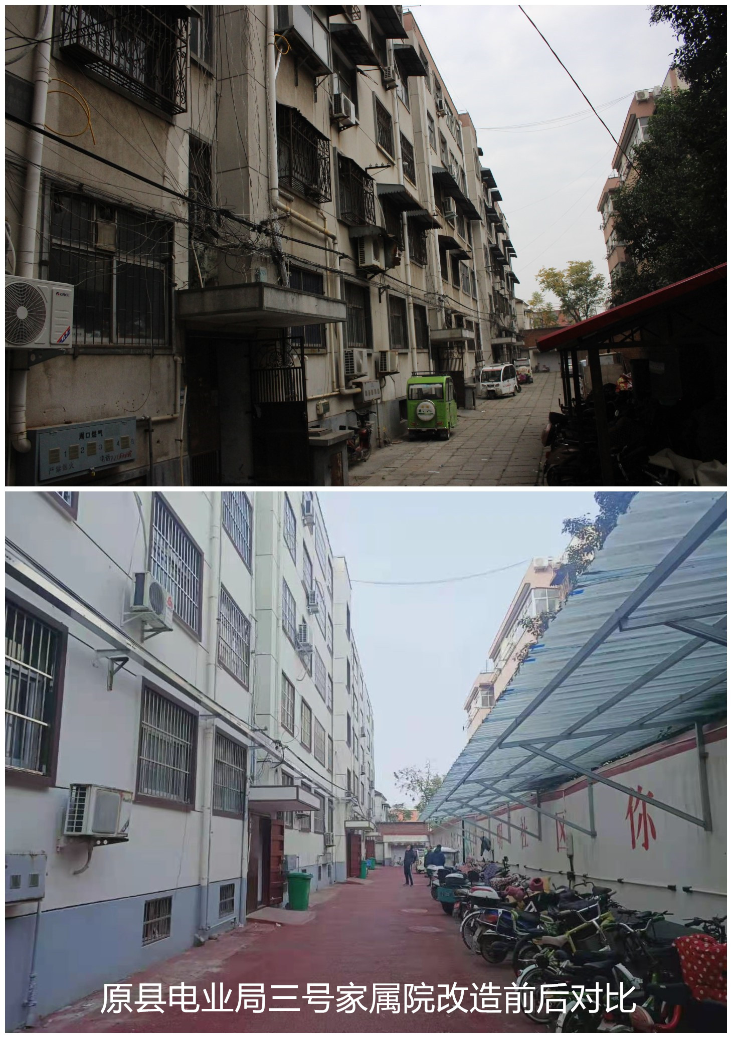 12月22日,陽光明媚,記者一行走進位于西華縣箕城路上的供電公司(原電業(yè)局)三號家屬院,只見一棟五層高的家屬樓墻壁被粉刷一新,家家戶戶新裝的不銹鋼防盜窗結(jié)實穩(wěn)固,院里新鋪設(shè)的紅色透水混泥土地面平整干凈,配有充電插座的電動車雨棚方便實用,充滿新意的“文化墻”耀眼醒目……