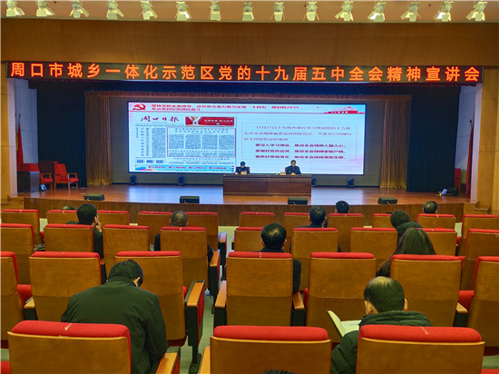 為深入學(xué)習(xí)宣傳貫徹黨的十九屆五中全會精神,根據(jù)市委統(tǒng)一安排,12月25日,市直機關(guān)工委書記閆冬梅為市城鄉(xiāng)一體化示范區(qū)黨員干部作學(xué)習(xí)貫徹黨的十九屆五中全會精神宣講報告。示范區(qū)黨工委委員、管委會副主任張曉主持宣講會。