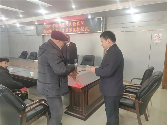 近日,淮陽(yáng)區(qū)人民檢察院舉行向被害人集中發(fā)放涉案款儀式,將近期辦理的一起盜竊案中追回的11720元退賠款一一發(fā)還給5名被害人。