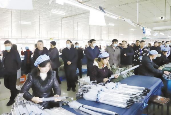 12月23日下午,在鄲城縣舉行的中國(guó)日用雜品工業(yè)協(xié)會(huì)制傘專(zhuān)業(yè)委員會(huì)五屆五次暨六屆一次會(huì)員代表大會(huì)中,來(lái)自全國(guó)制傘行業(yè)的精英們先后來(lái)到鄲城會(huì)客廳、傘業(yè)產(chǎn)業(yè)園、兄和家居、返鄉(xiāng)創(chuàng)業(yè)園、洺河森林樂(lè)園、鄲城一高、人民公園、體育場(chǎng)等地,實(shí)地感受鄲城高質(zhì)量發(fā)展成果和傘業(yè)發(fā)展?jié)摿Γ仓\中國(guó)傘業(yè)的發(fā)展前景。 記者 徐松 攝
