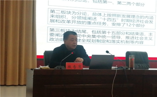 韋剛從深刻理解我國進入新發(fā)展階段的重大意義、有利條件、重要特征和重要戰(zhàn)略機遇期,準確把握2035年遠景目標和“十四五”時期我國發(fā)展的指導方針、主要目標、重點任務,牢牢把握構(gòu)建新發(fā)展格局的戰(zhàn)略構(gòu)想和重要著力點,堅持黨的全面領(lǐng)導等方面,生動翔實地解讀了十九屆五中全會精神,既有思想深度又有理論高度,為與會人員深入、系統(tǒng)、精準把握五中全會精神,進一步結(jié)合實際抓好全會精神貫徹落實、高質(zhì)量推進各項工作提供了有益參考。