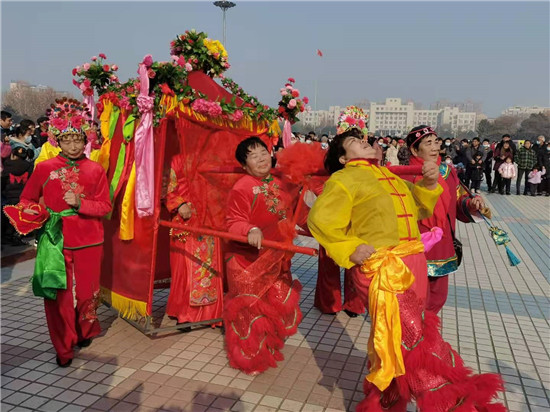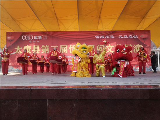 逢盛世踏歌起舞,迎新年歡樂祥和。12月27日上午,太康縣人民廣場彩旗招展、鑼鼓喧天、歌舞聲聲,成了一片歡樂的海洋?!般y城歡歌、太康縣慶元旦、迎新春”第二屆優(yōu)秀民間文藝展演隆重舉辦。本次活動有中共太康縣委宣傳部、太康縣文聯(lián)主辦,太康縣民間文藝家協(xié)會承辦,中共太康縣委宣傳部常務副部長趙勇、太康縣發(fā)展和改革委員會主任張知和、太康縣殘聯(lián)主席張慧玲、太康縣文聯(lián)主席安義斌、共青團太康縣委書記王麗、太康縣婦聯(lián)主席張艷等領導參加開幕式。中共太康縣委宣傳部常務副部長趙勇致辭并宣布活動開幕。