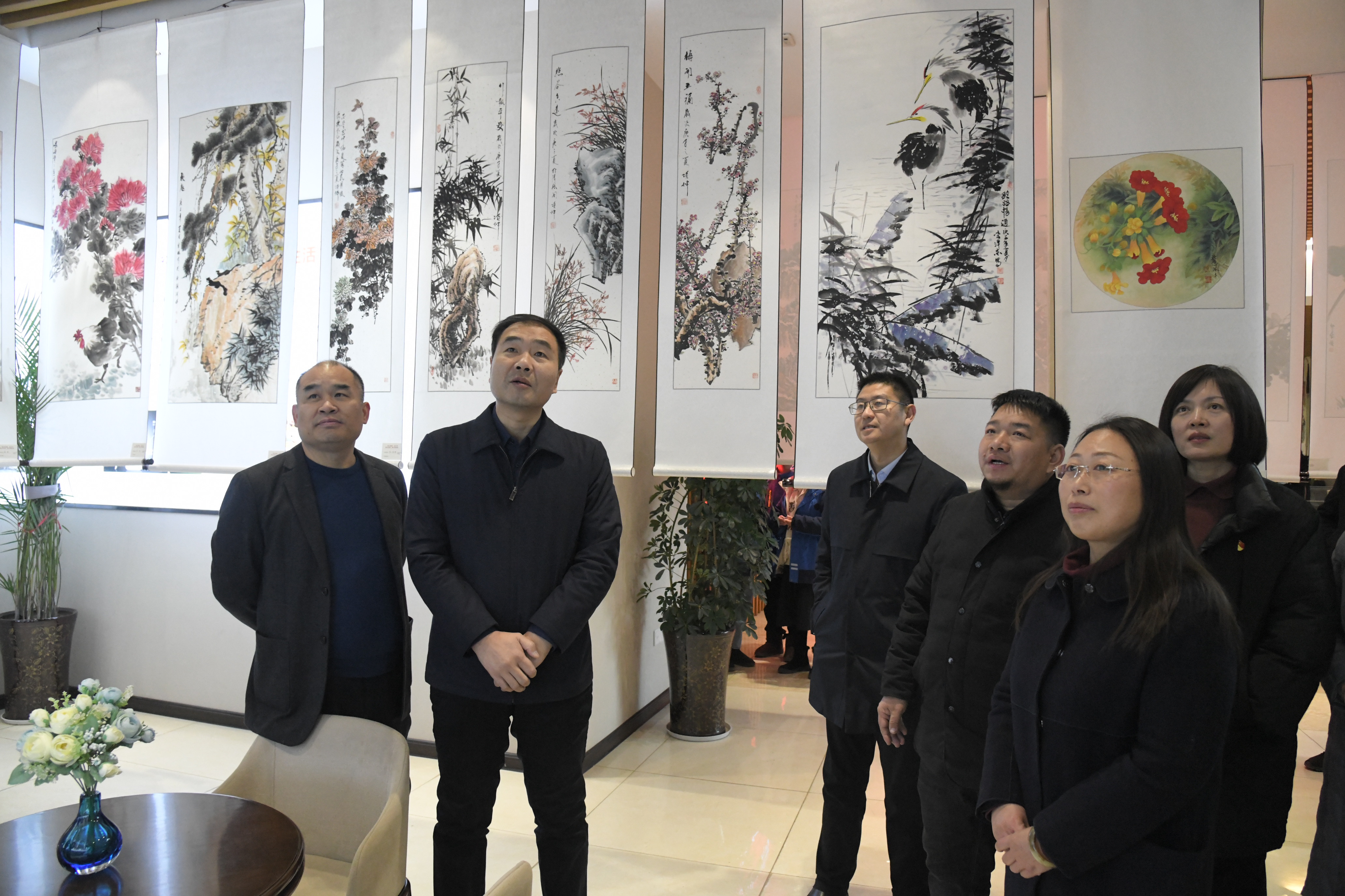 12月31日下午,商水縣委書記孔陽,縣人大主任李德來,縣委常委李本磊、王勇、王中紅、何海中、楊敏、劉衛(wèi)華等處級領導干部和社會各界群眾觀看“清華苑杯”迎雙節(jié)中國畫作品展。