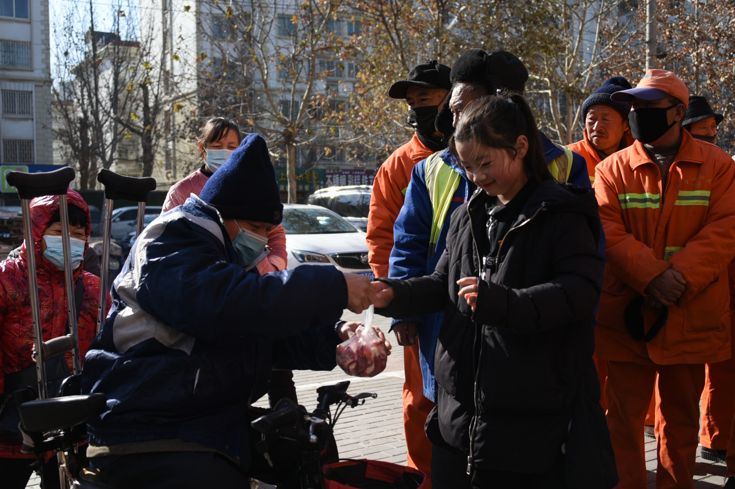 在現(xiàn)場分派羊肉的店老板陳峰稱,此次現(xiàn)場將為到場的環(huán)衛(wèi)工人、殘疾人朋友派發(fā)30多份,一些行動不便的困難家庭,他們隨后將登門相送。“一個人做一件好事不難,難的就是十幾年的堅持。”一名殘疾人朋友伸出大拇指說到。