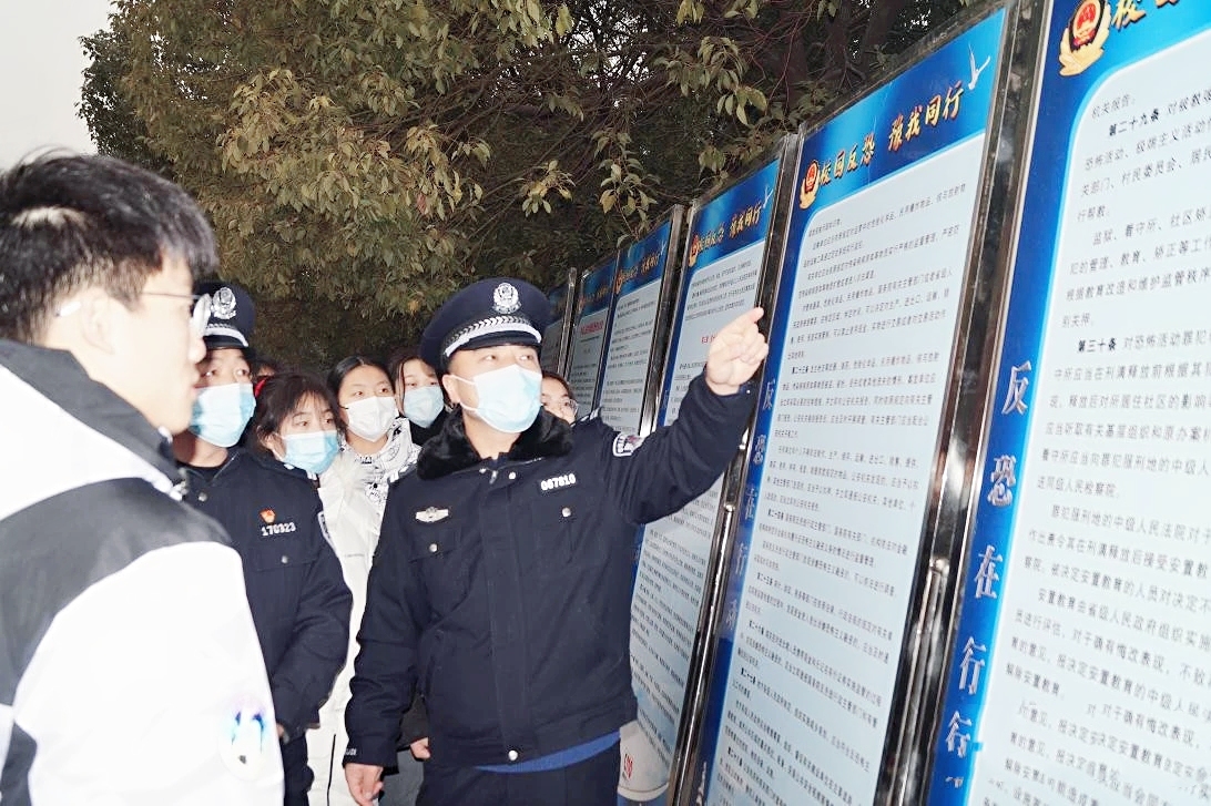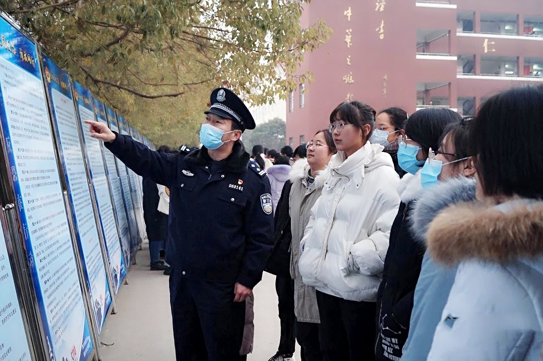 寒風(fēng)凜冽擋不住師生以及民警的熱情,豐富的內(nèi)容吸引師生在展板前駐足。民警深入淺出地講解讓師生們身臨其境,不少學(xué)生接到宣傳彩頁后,認(rèn)真閱讀并不時(shí)詢問相關(guān)知識(shí)?!翱戳苏拱?,聽了警察叔叔的講解后,我對(duì)恐怖主義有了新的認(rèn)識(shí),也明白了自己該怎么做,尤其是懂得怎樣更好地保護(hù)自己。今后,我將會(huì)按照宣傳展板講解的那樣,遠(yuǎn)離恐怖傷害,有效果規(guī)避恐怖危險(xiǎn),不造謠、不信謠、不傳謠?!眳⒓踊顒?dòng)的高一學(xué)生小劉說。
