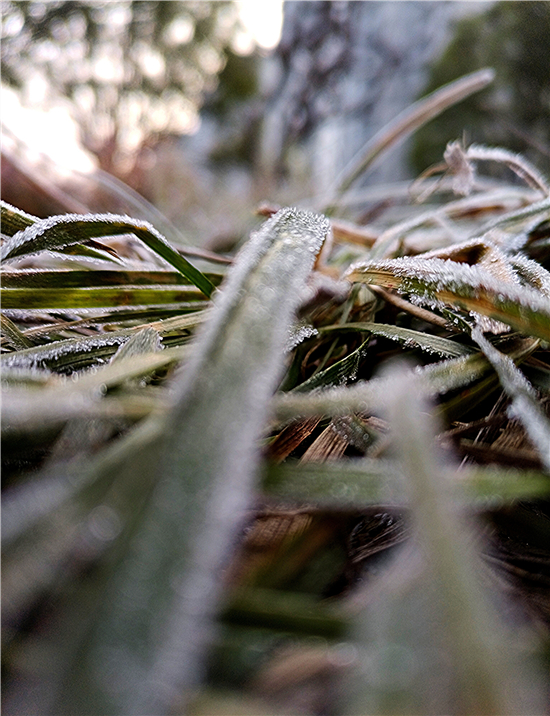 有詩(shī)云:“早寒青女至,零露結(jié)為霜。入夜飛清景,凌晨積素光?!?月6日,清晨時(shí)分,我市中心城區(qū)一層層雪白的霜花凝結(jié)在花草樹木等植物上,晶瑩剔透,令人驚艷,尤其在晨光的映照下,滿目的霜花就像一層銀光,把世界裝點(diǎn)得格外美麗。③2