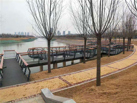沿流沙河風(fēng)景帶一路東行,沿河步道蜿蜒曲折,微地形高低錯(cuò)落,兩側(cè)栽下香樟、槐樹(shù)、雪松、石楠等不少喬灌木,碧桃、櫻花等彩色樹(shù)種夾雜其間,營(yíng)造河岸飄渺悠揚(yáng)的意境。為抵御寒冬,趕在大范圍降溫前,不少樹(shù)木已經(jīng)提前穿上了抵御寒冬的“保暖衣”。一路走來(lái),休閑廣場(chǎng)、公廁、觀景臺(tái)……原本狹窄的河道成了恬靜的休閑漫步區(qū)。不知不覺(jué)夜幕降臨,廣場(chǎng)上熱鬧起來(lái),盡管天氣嚴(yán)寒,卻絲毫抵擋不住人們出門(mén)鍛煉的熱情,橋上的彩色裝飾燈亮起,橋梁橫跨南北猶如飛虹,河流宛若玉帶,舉目遠(yuǎn)眺,燈火輝煌,一派迷人景象。