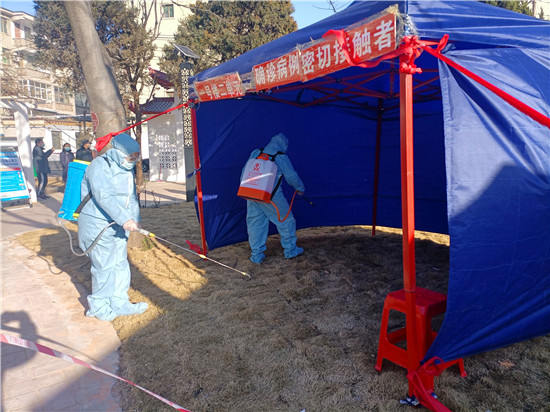 演練開始后,公安部門按照新冠肺炎疫情公共衛(wèi)生應(yīng)急處置預(yù)案要求,立即下達(dá)指令,派出所民警到達(dá)現(xiàn)場維護秩序,區(qū)域控制,拉警戒線,嚴(yán)格管控人員,禁止一切車輛和人員通行。街道辦事處迅速組織社區(qū)干部及社區(qū)網(wǎng)格員開展核酸檢測和宣傳動員工作,根據(jù)應(yīng)急預(yù)案分工開展群眾宣傳動員工作,并對患者居住單元電梯樓道等公共區(qū)域進行消毒。工作人員到確診患者家對2名密切接觸者進行流調(diào)和健康教育,將密切接觸者用120負(fù)壓救護車單人單車轉(zhuǎn)運至集中醫(yī)學(xué)隔離觀察點,對確診病例家庭環(huán)境進行采樣和消殺。