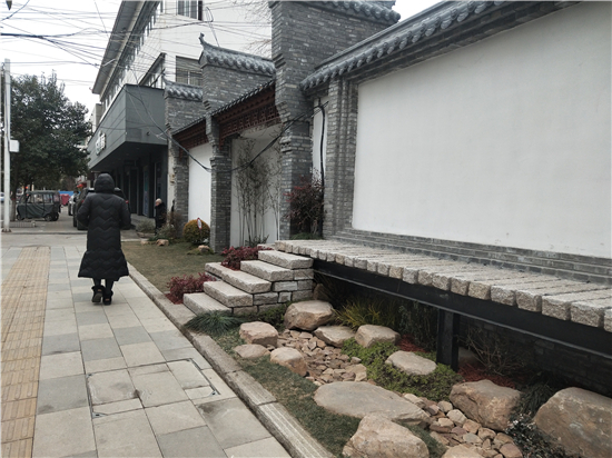 對(duì)面商鋪的張先生見(jiàn)證了這條小街的驚艷蝶變?!拔拿鞅甭肥抢辖?,之前這條街上的墻壁斑駁不已?!睆埾壬f(shuō),雖然街道極其干凈,但是覺(jué)得并不是很雅觀?,F(xiàn)在,綠植、竹林、亭臺(tái)取代了街道往日的蕭條沉寂,生態(tài)文化景觀一下子提振了小街的文化范,讓人覺(jué)得耳目一新。