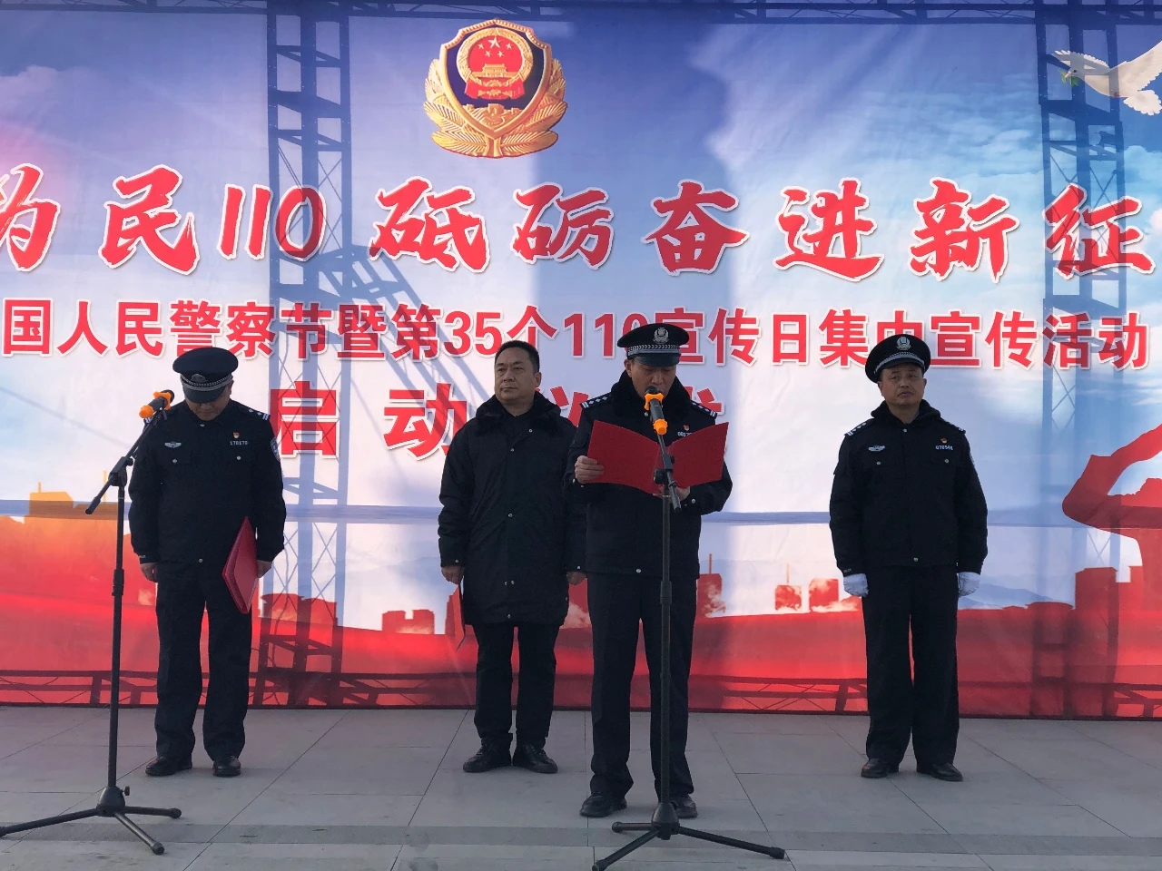 為慶祝首屆中國(guó)人民警察節(jié),迎接全國(guó)第35個(gè)“110宣傳日”,在全社會(huì)營(yíng)造濃厚宣傳氛圍。1月10日上午,鹿邑縣公安局在弘道苑廣場(chǎng)舉辦首屆人民警察節(jié)暨110宣傳日集中宣傳活動(dòng)??h委常委、政法委書記張國(guó)慶,縣政府副縣長(zhǎng)、公安局長(zhǎng)任金瑞出席活動(dòng)并講話,縣局黨委委員、民警代表,12345公眾服務(wù)熱線、金融、電信、社會(huì)公益組織等單位參加。