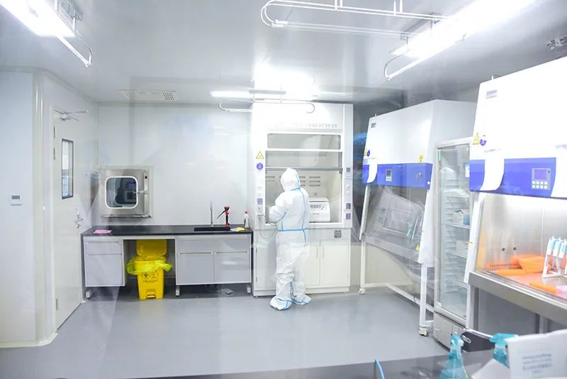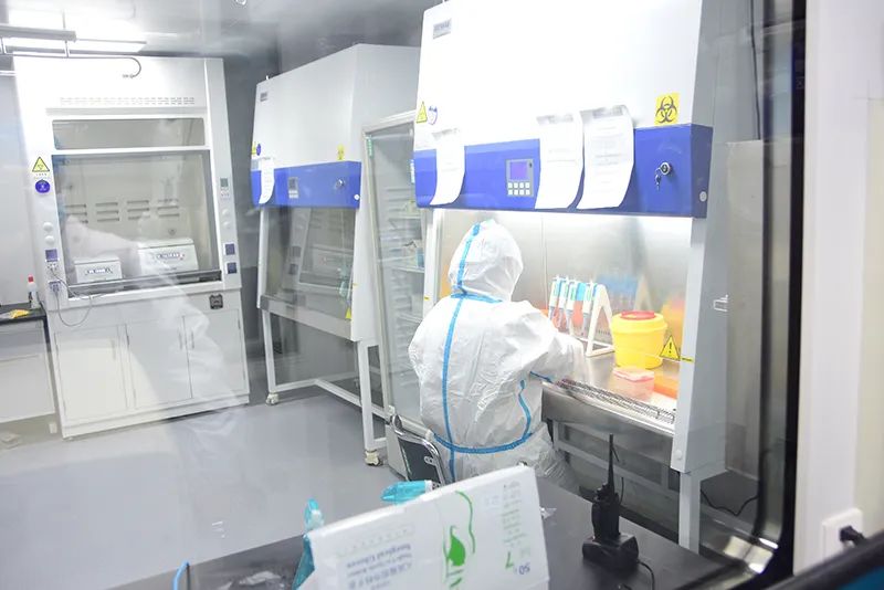 該檢驗(yàn)室嚴(yán)格按照四區(qū)兩通道建筑標(biāo)準(zhǔn),擁有全自動(dòng)核酸提取儀、實(shí)時(shí)熒光擴(kuò)增儀、生物安全柜、通風(fēng)櫥、離心機(jī)等先進(jìn)設(shè)備,檢測(cè)人員均經(jīng)過了嚴(yán)格的規(guī)范化培訓(xùn)和資質(zhì)認(rèn)證。實(shí)驗(yàn)室參照國家衛(wèi)健委有關(guān)規(guī)定和檢測(cè)工作流程,嚴(yán)格做好標(biāo)本收集、儲(chǔ)存、運(yùn)輸環(huán)節(jié)的安全防護(hù),確保檢測(cè)對(duì)象、采樣和運(yùn)送人員安全,杜絕交叉感染。