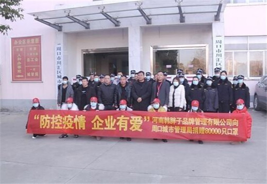 參加慰問的河南韓胖子品牌管理有限公司經(jīng)理秦林說,城管隊(duì)員每天堅(jiān)持在抗疫第一線,是城市的美容師。我們這次向城管局捐獻(xiàn)口罩,貢獻(xiàn)自己的一份愛心,也為城市建設(shè)增加一份力量。