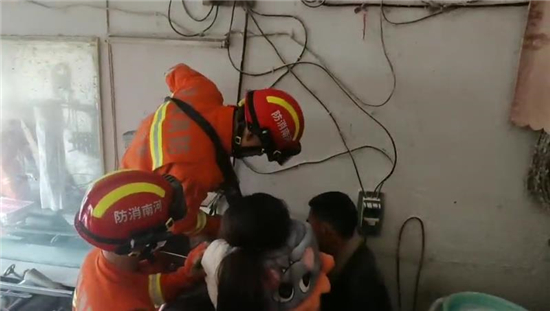 于是,指戰(zhàn)員使用無齒鋸、電動剪切鉗先后對壓面機(jī)內(nèi)部構(gòu)建鋼材進(jìn)行切除,使用無齒鋸切除過程中,消防員細(xì)心的用胳膊護(hù)住女子頭部。期間,女子由于疼痛不停地喊著,“?。√鬯牢伊?!”救援人員一邊安撫著女子,一邊小心翼翼的拆卸著壓面機(jī)。