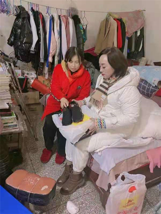 近日,氣溫驟降,戶外寒風(fēng)凜冽,薛華杰在百忙之中從自己鞋店里挑選三雙最好的運動鞋,到商場里買了三件棉衣、棉被,驅(qū)車為王英母女三人送去。在出租屋里,她們像久違的親人見面,嘮著家常。王英高興地講著孩子們上學(xué)的努力和爭氣,感謝為丈夫在外打工聯(lián)系務(wù)工地點。并表示,家里的生活在黨和政府的關(guān)懷下,在薛華杰的幫助下,一定會越過越好。
