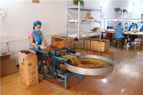 “我們幾家同行在一起,不但沒有惡意競爭、相互拆臺,反而取長補短、相互配合,抱團發(fā)展?!敝x紹鋒是返鄉(xiāng)創(chuàng)業(yè)的另一位化妝刷老板之一??紤]到源源不斷的訂單,謝紹鋒的企業(yè)車間索性和其他三家工廠從南到北連成了一個大通道,大家資源共享,聯(lián)手協(xié)作;在縣產(chǎn)業(yè)集聚區(qū)昊鑫尾毛產(chǎn)業(yè)園,黃純杰的億鑫源等四家化妝刷企業(yè)既各有門戶又連成一片,幾年前還在深圳辦廠眼界開闊的他通過邀請“網(wǎng)紅主播”、培養(yǎng)自己的直播帶貨團隊,帶領(lǐng)大家開辟出一條電商銷售新天地。