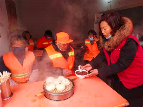 儀式結(jié)束后,愛(ài)心志愿者還為環(huán)衛(wèi)工(保潔員)端上熱騰騰的早餐,送上了一份貼心的溫暖。