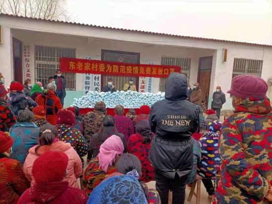 據了解,東老家行政村在外務工人員較多,在家留守的老人特別是貧困家庭的老人大多沒有準備口罩。村黨支部書記劉杰了解到這一情況后,結合春節(jié)臨近,外出務工返鄉(xiāng)人員逐漸增加的現狀,決定購買2萬只口罩,免費向本村六十歲以上老人、貧困戶家庭人員、村小學師生每人發(fā)放50只,確保他們的個人疫情防控所需。