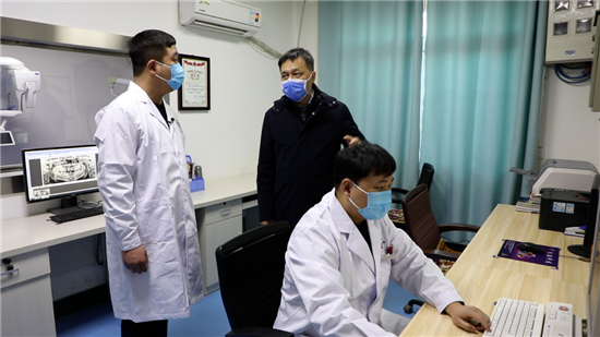 在鄲城縣虎崗鄉(xiāng)衛(wèi)生院,河南省人大代表、鄲城縣人民醫(yī)院院長于健正在了解剛剛成立的急性腦卒中“綠色通道”的運營情況。冬季是腦卒中的高發(fā)季節(jié),如果救治不及時,患者會留下面癱、肢體無力等后遺癥。為此,鄲城縣人民醫(yī)院卒中中心在全縣9個鄉(xiāng)鎮(zhèn)衛(wèi)生院開辟“綠色通道”,在鄉(xiāng)衛(wèi)生院首診為腦卒中的患者,可以通過綠色通道,第一時間送往縣人民醫(yī)院開展救治。