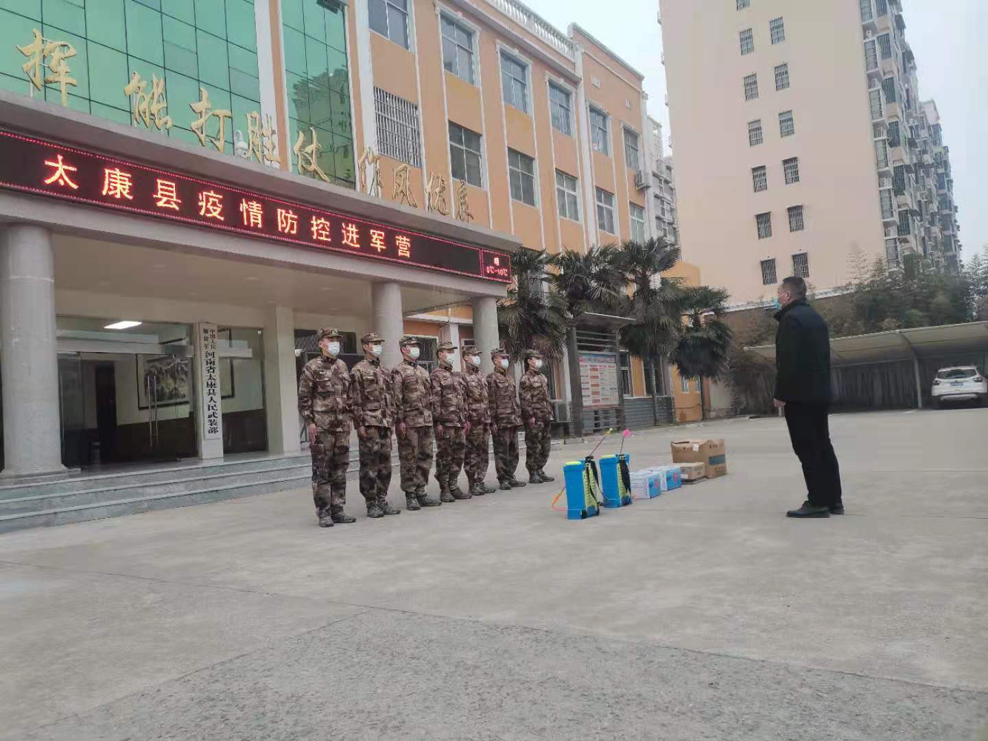 為大力弘揚(yáng)擁軍優(yōu)屬的光榮傳統(tǒng),確保廣大駐太官兵疫情期間的健康安全,助力征兵工作的開(kāi)展,1月20日,太康縣退役軍人事務(wù)局聯(lián)合縣衛(wèi)計(jì)委,認(rèn)真開(kāi)展“疫情防控進(jìn)軍營(yíng)”活動(dòng),為縣人武部、武警中隊(duì)、消防大隊(duì)送上了防護(hù)服、口罩、消毒液、消毒器械等防疫物資??h退役軍人事務(wù)局局長(zhǎng)潘布道及縣疾控中心副主任張道林等參加活動(dòng)。