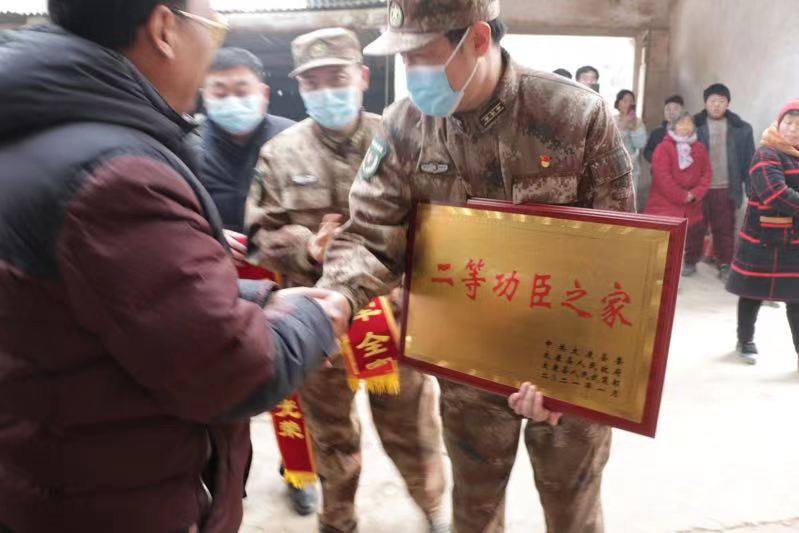 1月21日下午,太康縣高賢鄉(xiāng)保渡村現(xiàn)役軍人程勝杰家門前鑼鼓喧天,喜氣洋洋,熱鬧非凡。太康縣委常委、縣人武部部長于永前,政委郭立君,縣退役軍人事務(wù)局局長潘布道,高賢鄉(xiāng)黨委書記鄭宏等相關(guān)領(lǐng)導(dǎo)一行,為榮立二等功的程勝杰家屬送來了立功喜報、“二等功臣之家”牌匾及5000元慰問金。