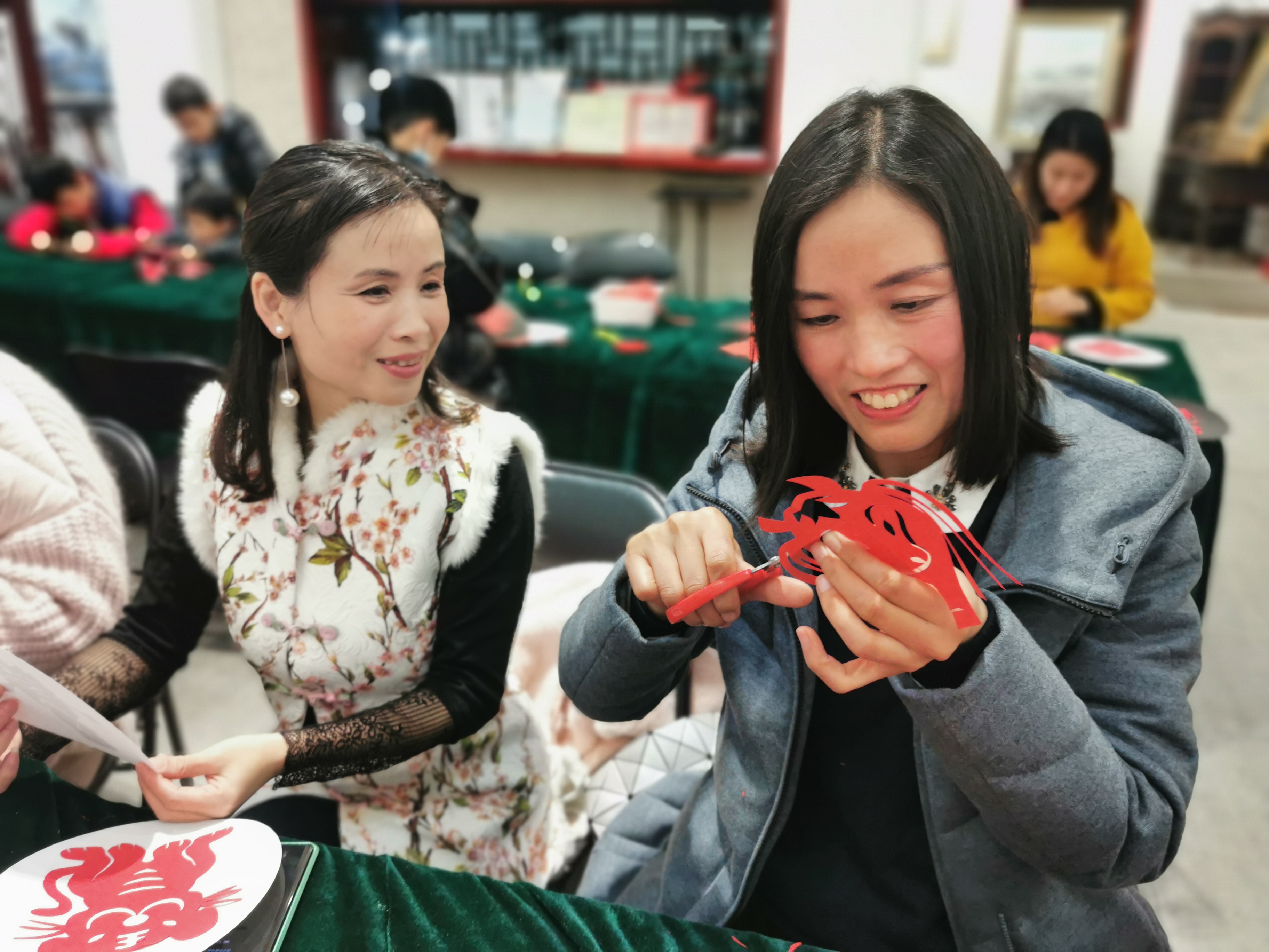 1月22日下午,工農(nóng)路華威學堂內(nèi),蕓雅讀書社的會員在學習剪紙,感受傳統(tǒng)文化帶來的快樂。