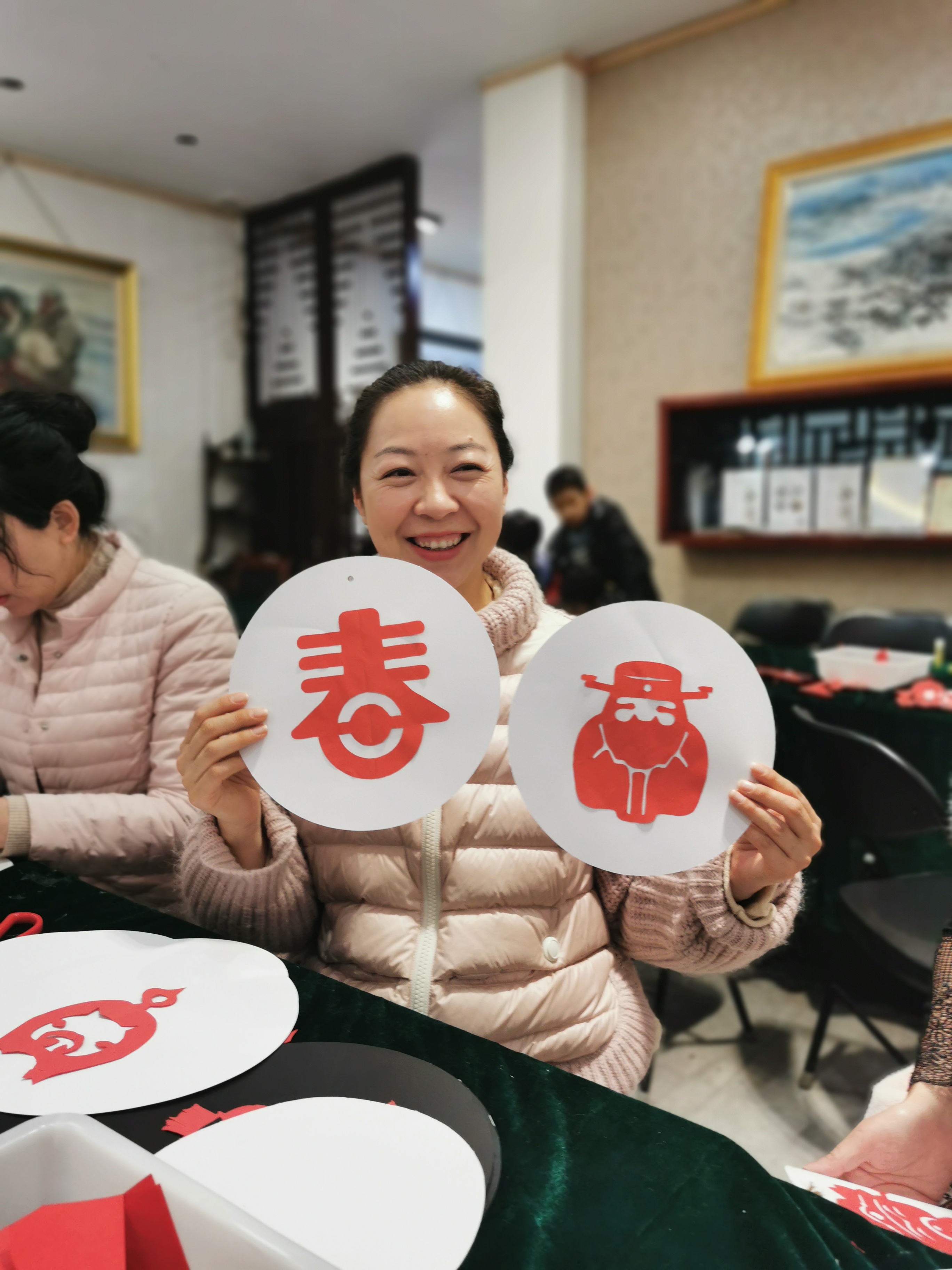 剪紙表現(xiàn)了中華民族淳厚雋永的民情與民風,是中國民間最為流行的一種藝術形式。為了讓大家學習、傳承這種極具傳統(tǒng)色彩的藝術,蕓雅讀書社組織了學習剪紙的活動。現(xiàn)場,大家用剪刀在紅紙上剪出福、祿、壽、喜和各種圖案,極具喜慶吉祥的寓意,讓人們感受到了傳統(tǒng)新年的熱鬧。②8