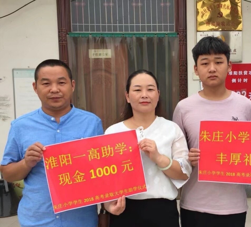 楊起峰是淮陽第一高級(jí)中學(xué)駐王店鄉(xiāng)朱莊行政村第一書記。2015年9月,他積極響應(yīng)區(qū)委、區(qū)政府的號(hào)召,帶著沉甸甸的責(zé)任來到王店鄉(xiāng)朱莊行政村任第一書記。從三尺講臺(tái)到田間地頭,楊起峰迅速轉(zhuǎn)變角色,立即投身駐村幫扶工作。通過走訪調(diào)查,他發(fā)現(xiàn)大部分村民不重視孩子教育,很多孩子初中沒畢業(yè)就被家長“趕出去”打工,掙錢養(yǎng)家娶媳婦。針對(duì)這一現(xiàn)實(shí),作為一名教育工作者,楊起峰本能的意識(shí)到:想要改變朱莊村的面貌,必須先從改變思想觀念入手,把教育扶貧作為從根本上阻斷貧困代際傳遞的主抓手。他用諸多靠上學(xué)改變命運(yùn)的典型案例告訴大家“磨刀不誤砍柴工,考上大學(xué)才叫中”鼓勵(lì)村民重視對(duì)孩子的教育,讓知識(shí)改變命運(yùn)的觀念深入人心。為了鼓勵(lì)群眾,在校長的支持下,他制定了激勵(lì)措施:凡是考上大學(xué)、高職高專的學(xué)生獎(jiǎng)勵(lì)現(xiàn)金1000元并送生活用品,印制光榮榜敲鑼打鼓送到家,在村內(nèi)顯眼處張貼學(xué)生本人和家長的照片,讓他們成為左鄰右舍的榜樣,讓他們成為群眾眼里的明星。