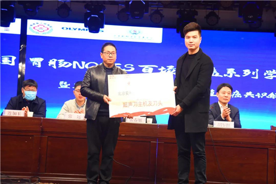 楊雨旺書(shū)記介紹了鄲城縣人民醫(yī)院胃腸外科的基本情況以及在近年發(fā)展中取得的長(zhǎng)足進(jìn)步。胡軍紅教授在致辭中指出,NOSES作為一種微創(chuàng)中的微創(chuàng)手術(shù),是一種醫(yī)患共贏的好技術(shù),是未來(lái)微創(chuàng)外科發(fā)展的趨勢(shì)和方向之一。他對(duì)不辭勞苦開(kāi)展公益學(xué)術(shù)講座,推廣NOSES理念和技術(shù)的各位專家表示感謝,同時(shí)預(yù)祝系列學(xué)術(shù)活動(dòng)圓滿成功。 中國(guó)胃腸NOSES聯(lián)盟向鄲城縣人民醫(yī)院贈(zèng)送了《胃腸手術(shù)策略與操作圖解》等專業(yè)書(shū)籍20本和超聲刀一套。
