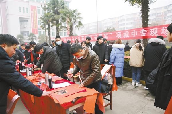 1月23日上午,項城市中等專業(yè)學校、市書法家協(xié)會聯(lián)合開展了“我們的節(jié)日——義寫春聯(lián)進校園”活動,黃樹民等6位書法家受邀來校為廣大師生義務書寫春聯(lián)。師生代表紛紛請名家為自己寫春聯(lián),整個活動洋溢著歡樂祥和的氣氛?!拔覀兊墓?jié)日——義寫春聯(lián)進校園”活動不僅繼承和發(fā)揚了中華優(yōu)秀傳統(tǒng)文化,而且豐富了在校師生的精神文化生活,助力了書香校園建設,堅定了師生的文化自信。 李立云 郭新明 攝