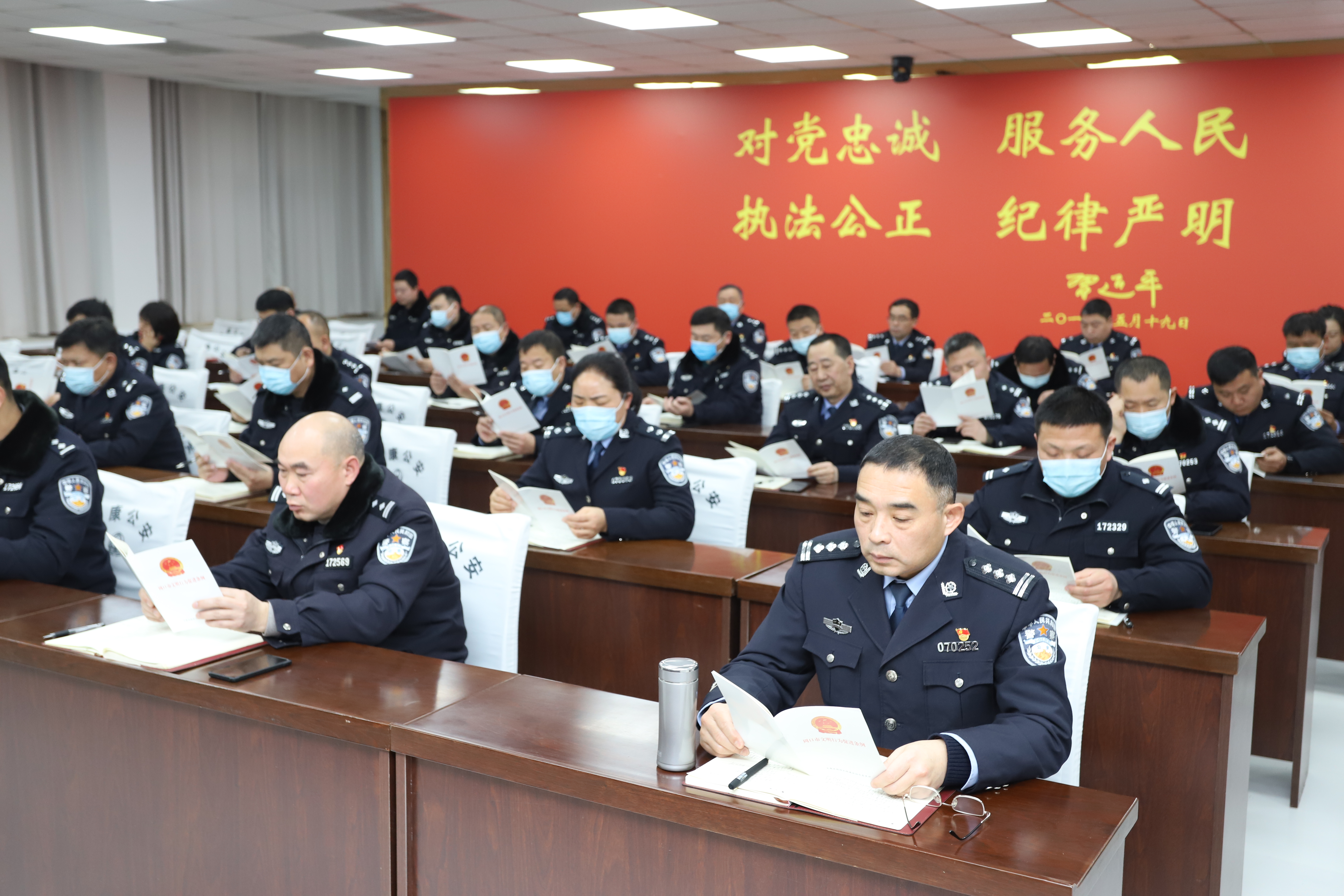 太康縣公安局重視精神文明建設(shè)工作,日前局黨委號召全體民警說文明話,做文明事,爭做文明警察,創(chuàng)建文明警營活動。圖為該局組織民警學(xué)習(xí)《周口市文明行為促進(jìn)條例》。③5