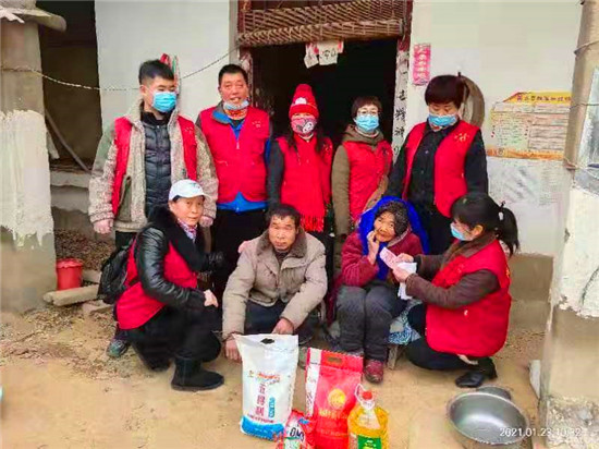 昨日,商水縣義工協(xié)會(huì)負(fù)責(zé)人劉玉英帶領(lǐng)10余名志愿者開展“寒冬送溫暖”慰問活動(dòng),為練集鎮(zhèn)劉坡行政村建檔立卡貧困戶、五保戶等群體送去慰問金、大米、面粉、食用油、春聯(lián)等物品,讓他們感受到社會(huì)的關(guān)懷和溫暖。