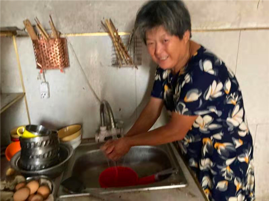 閆欽中是三店鎮(zhèn)大趙村因病致貧的貧困戶。近幾年,他搞養(yǎng)殖、種蔬菜進(jìn)行增收脫貧,可吃水問題一直困擾著他。市水利局駐村工作隊科學(xué)規(guī)劃,及時將供水管道鋪進(jìn)了他家。擰開水龍頭,看著嘩啦啦的清澈水流,閆欽中臉上樂開了花。