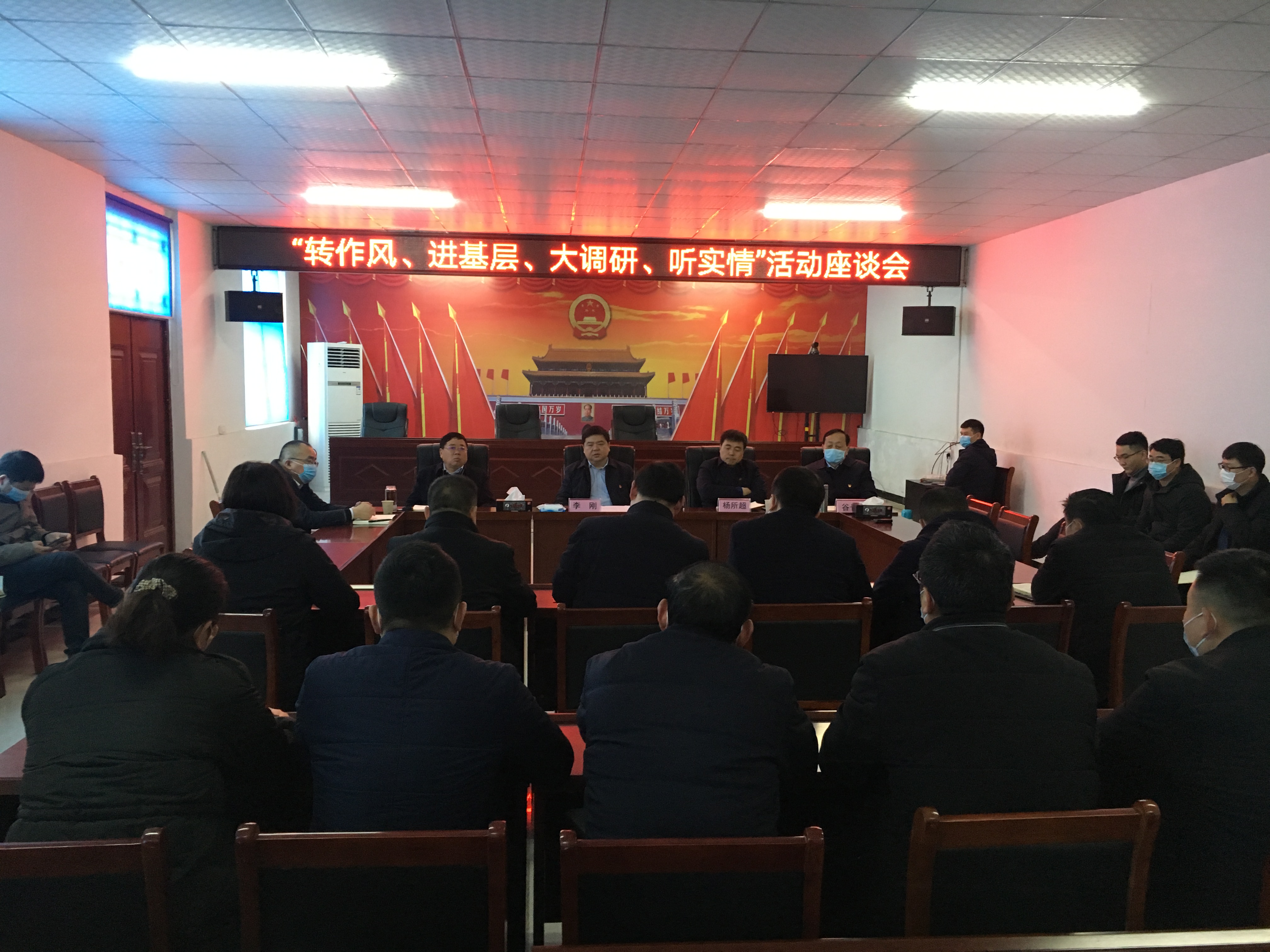慰問(wèn)結(jié)束后,李剛一行到衛(wèi)真辦事處開(kāi)展"轉(zhuǎn)作風(fēng)、進(jìn)基層、大調(diào)研、聽(tīng)實(shí)情"活動(dòng),召開(kāi)座談會(huì),聽(tīng)取辦事處工作匯報(bào),并圍繞基層社區(qū)黨建、經(jīng)濟(jì)發(fā)展思路、疫情防控、城市管理、信訪穩(wěn)定等工作進(jìn)行座談交流。調(diào)研組工作人員、衛(wèi)真辦事處全體班子成員及后備干部參加座談。