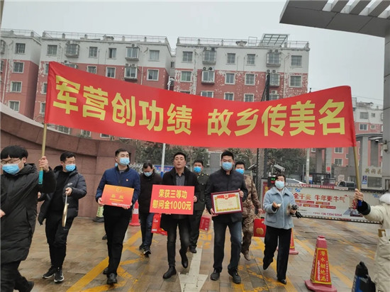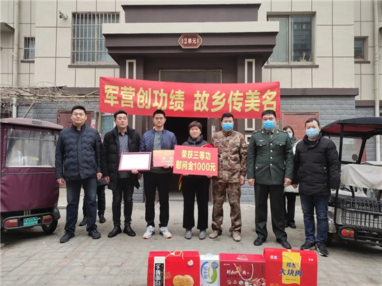 “您的孩子在部隊表現(xiàn)優(yōu)異,榮立三等功,我們給您送喜報來了?!笔痉秴^(qū)民政和退役軍人事務局副局長王軍廠高興地說,把喜報送到苑航源母親手中,并為其披掛綬帶、送上慰問金、慰問品。感謝苑航源一家為部隊輸送了優(yōu)秀人才,調(diào)動了廣大適齡青年參軍入伍的報國熱情,為部隊建設作出了突出貢獻,同時也為家鄉(xiāng)人民爭了光添了彩。