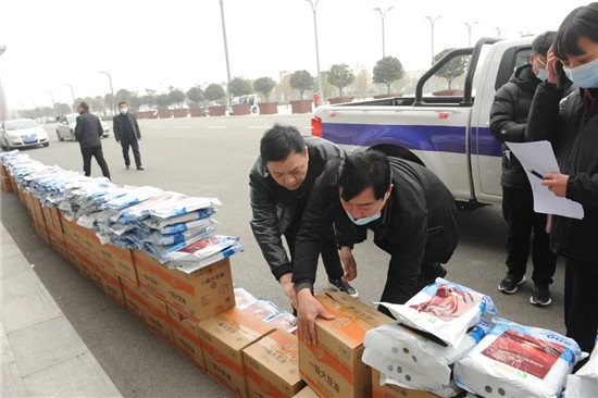 1月27日上午,滿載食用油、大米的幾輛車??吭谥芸谑谐青l(xiāng)一體化示范區(qū)辦公樓前,這是愛心企業(yè)頤科中心、永威·頤科東棠開展的扶貧物質(zhì)捐贈儀式。區(qū)管委會副主任王磊、李培華出席捐贈儀式。